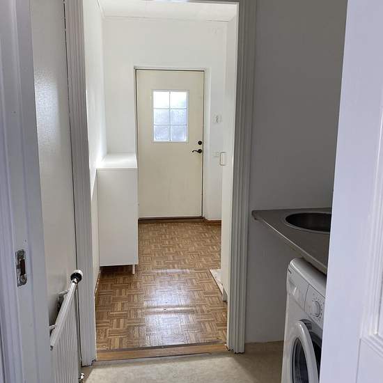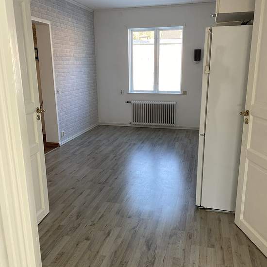 Cozy two-room apartment on the first floor with a south-facing patio. Completely newly painted. Available immediately. Washing machine; drying room included. Access to a garden and one parking space included. Storage room included. Heating and water included. Separate household electricity subscription. Fiber is connected so a separate contract can be set up. Rented for six months, after which it will convert to an open-ended (indefinite) lease. A guarantor may be required. 60 m to the bus stop. Service fee for tenant: 349