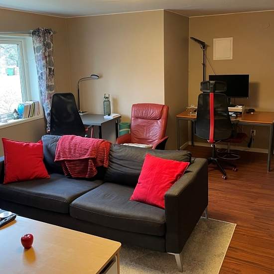 Nice apartment built in 2017 in a villa in the beautiful, quiet, lakeside Saltsjö-Duvnäs in Nacka. An eight-minute walk to Ektorp with very good public transport to Slussen (15 minutes). A ten-minute walk to the Saltsjöbanan. 2 rooms and a kitchen, approximately 55 sqm. Private entrance and parking outside the door. Small patio outside the entrance. Underfloor heating in the hall, living room and shower room. Kitchen and shower room from 2017. New dishwasher (2026), as well as fridge/freezer and microwave. New washing machine with dryer (20...