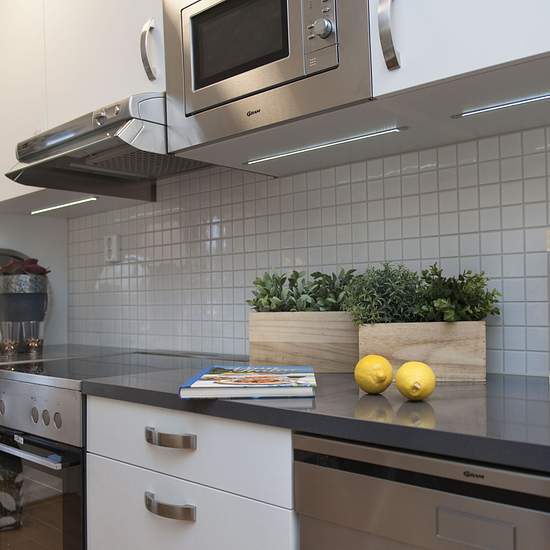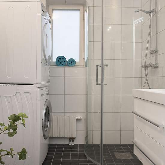 The apartment is approx. 62 sqm, has light walls and white-stained oak flooring. A full renovation is in progress. The kitchen will include a fridge and freezer, dishwasher, built-in microwave and extractor hood — all in stainless steel. Durable dark-gray composite stone countertops. Stove with a glass-ceramic hob. The bathroom is fully tiled with practical glass shower walls, underfloor heating, washing machine and tumble dryer. There is a balcony, an associated storage room and a communal laundry room. TV provider: ComHem, included in the ...