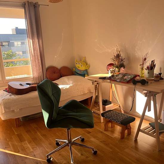 Room in a spacious apartment (83 m²), very bright, near a nature reserve. Our home has everything you need: a living room with a projector, a well-equipped kitchen, a private fridge and freezer, an indoor washing machine, and a separate bathtub and bathroom. The bedroom is furnished and has a shelf for storage as well as a desk (we can arrange additional storage space if needed). The apartment has excellent transport links – a 5-minute walk to the red line metro, a gym and a grocery store. There is also an art venue across the street and ...
