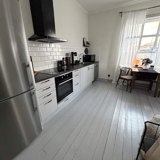 Completely renovated turn-of-the-century dream 2-room apartment (2 rooms and kitchen) of approximately 36 sqm, located in the old hat shop, is now available for rent! The apartment has an efficient layout without compromise when it comes to the kitchen and bathroom. The entire apartment was newly renovated in 2023 with kitchen, wardrobe and vanity unit from Marbodal and stainless steel appliances from Electrolux. The kitchen is spacious and is equipped with an induction hob and convection oven as well as a dishwasher. High ceilings and larg...