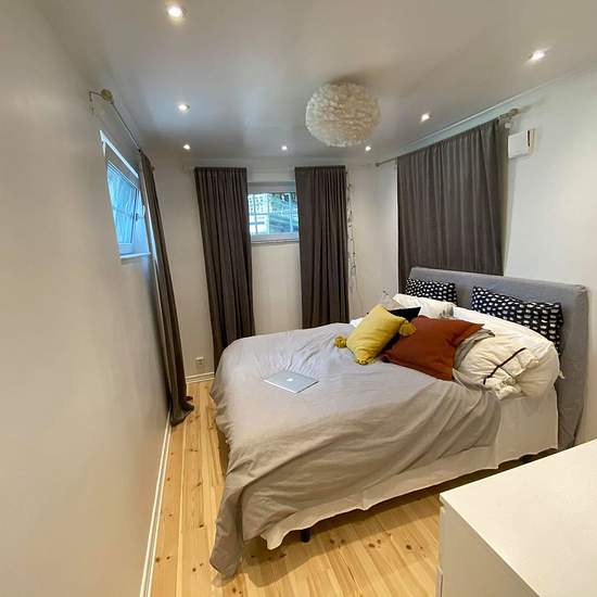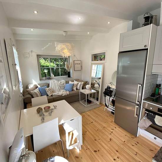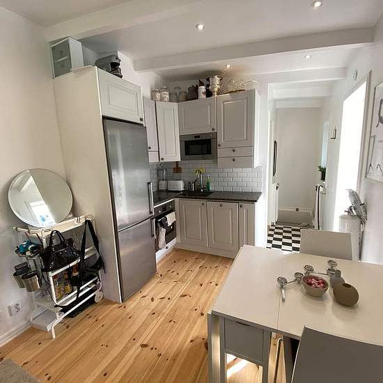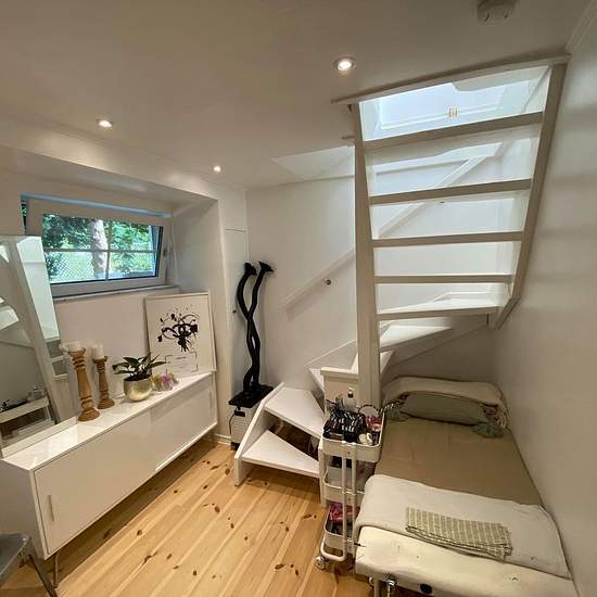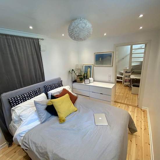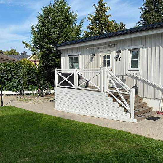 Exclusive Attefall house in a relatively newly built property. The Attefall house consists of two floors. On the upper floor there is a living room, kitchen and bathroom. The lower floor comprises a bedroom and a study. A private veranda is located next to the Attefall house. The charming inner courtyard is shared with seven other tenants. Fiber broadband is installed. The apartment is located in one of Södertälje's absolutely best locations, within walking distance of both Södertälje centrum and the station, as well as the scenic Torekäll...