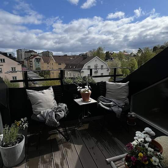 Renoverad vindslägenhet med terrass i mycket gott skick. Hyrs ut i 6 månader. Nära till stan och goda kommunikationer. Ca 5 min gångavstånd till MoS. Bostaden är 35 kvm boa och 49 kvm golvyta. Generöst badrum. Perfekt för 1-2 pers. Kontrakt tecknas genom Fastighetsägarnas standardavtal. En månadshyra som deposition. Bostaden hyrs ut mellan 1 mars 2026 - 31 augusti 2026. Serviceavgift för hyresgäst: 952