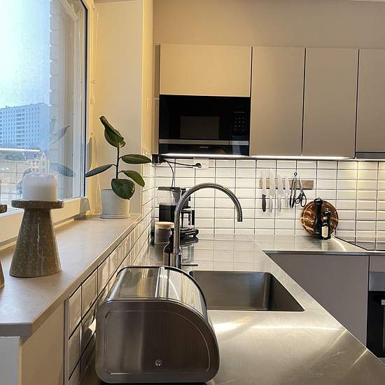 Social och öppen planlösning mellan kök och vardagsrum. Utgång från vardagsrummet till en generös balkong. Utmärkt förvaring i garderober. Genomgående ljus mattlackad askparkett och kök från Puustelli med bänkskiva i rostfritt stål och integrerade vitvaror. Gym, hobbyrum, co-working space och en relaxavdelning finns i föreningen. Dessutom en härlig gemensam takterrass med grill. Parkering finns att hyra i närheten. I Haga Norra bor du nära Vasastan och med Hagaparkens vatten och natur som granne. Med Mall of Scandinavia, ett stenkast bort...