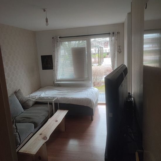 Bright room for rent in Hjulsta – move-in January / immediate A room of approx. 15–17 sqm for rent in my 58 sqm apartment in Hjulsta, northwestern Stockholm. Small, green area within walking distance to Järva Fields, which includes a large cultural heritage site and Europe’s highest-ranked disc golf course, as well as Järva Bath, etc. 3-minute walk to the bus station and the square. On the square there is: - Metro - Grocery store - Café - Persian charcoal grill / pizzeria - Hair salon - Suit rental Public transport: - 22 min to T-Centra...