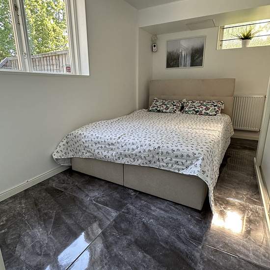 Two-room apartment FOR RENT 40 sqm (living room, private kitchen + bedroom) SPÅNGA Sundby 4 min walk to buses. 10 min to Spånga station by bus. This part of Spånga is very close to Bromma. The apartment is part of a villa with its own entrance, furnished. The kitchen with appliances is included. There is a shared laundry room. Built-in wardrobe in the bedroom; you also get your own refrigerator and freezer for your own food. TV and parking can be arranged if needed. Large patio where you can enjoy the sun all day in summer. This part of th...