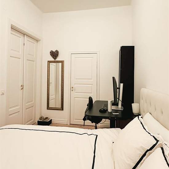 Välkommen till en magisk tvåa från sekelskiftet med originalgolv i furu, imponerande 3,2 meter i takhöjd och charmiga ovala fönster i sydläge. Här badar hemmet i ljus stora delar av året och erbjuder en härlig kombination av karaktär, rymd och modern komfort. Finns plats för skrivbord med skärmar i sovrummet. Planlösning Lägenheten ligger på tredje våningen, och har en öppen och social planlösning med vardagsrum och kök i fil, vilket skapar en rymlig yta för middagar och umgänge. Sovrummet är avskilt och rymmer en rymlig säng på 180cm sam...