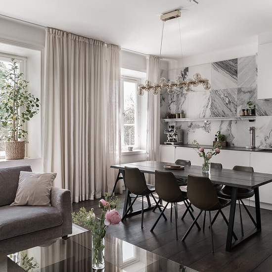 Sekelskifteslägenhet med högt i tak, mycket ljus och öppen planlösning. Nyrenoverad. Serviceavgift för hyresgäst: 1606