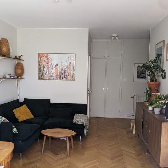 English below: Lägenhet nära vattnet i Hornstull uthyres på grund av längre utlandsvistelse. Lägenhet är mycket fräsch, de flesta ytskikt gjorda nyligen åren (golv, väggar) och badrumsinredning bytt. Gemensam takterrass och tvättstuga som båda kan bokas. Gott om förvaring för 35 kvm (tre garderober, hallförvaring, skåp med dörrar ovanför säng, sideboard och stora skåp i köket). Superfin balkong högt upp i huset med utsikt mot vattnet åt ena hållet (sjöglimt) och sol från tidig morgon till mitt på dagen, blir varmt! Lägenheten håller si...