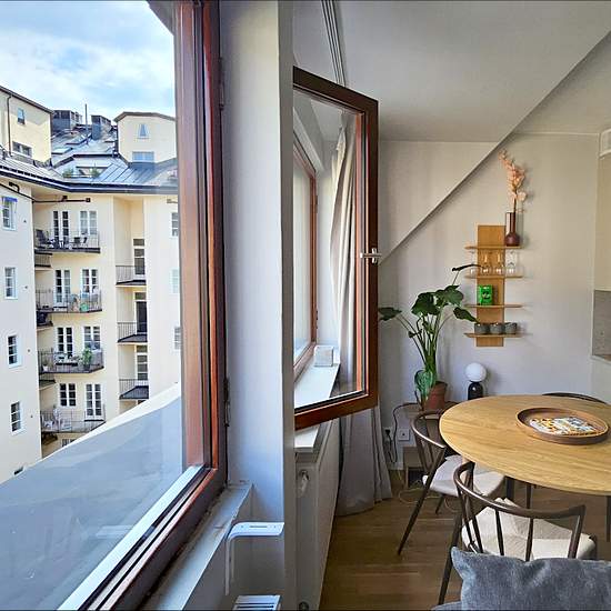 En härligt välplanerad och ljus tvåa på 45 kvm, passande för 1-2 personer, med privat badrum och kök, högst upp i byggnaden. Studion är vid inflyttning helt nyrenoverad, och kommer möblerad. Med sin sydvästliga riktning och höga läge mot Saltmätargatan får man utmärkt ljusinsläpp under dagar och kvällar, utan ljuden från Sveavägen som ligger strax bakom – Njut av stadslivet, utan bullret! Lägenheten är vid inflyttning möblerad. I månadskostnaden inkluderas kostnaden för vatten, värme, el, samt bredband. Lägenheten hyrs ut med ett tidsbegr...