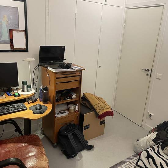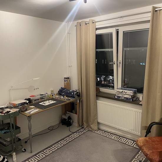 The apartment consists of two rooms with a kitchen, a shower room and a hallway. I live in my room and the other is intended for a lodger. The room for the lodger is about 10 square meters and has its own wardrobe. The room has a desk, a table lamp, curtains, a ceiling light and a small drawer unit for storage. The window faces Götgatan at Skanstull. Good transport links as the property is so central. Everything is nearby such as restaurants, pubs, shops, dental care, the health center, bus stations and the subway station. The property was r...