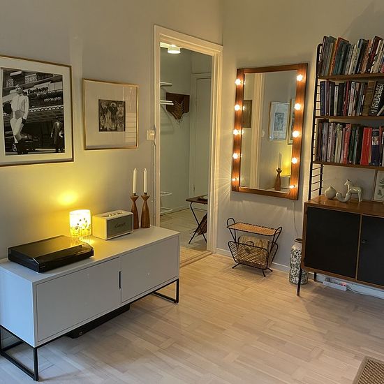 Welcome to this bright, charming one-bedroom apartment in Gröndal with original details from the 1940s, surrounded by greenery and within bathrobe distance to Mälaren and the pier for swimming. The entire apartment has light wooden floors and beautiful parquet in the living room. For rent due to a temporary job in another location. Gröndal is a cozy, beautiful, and safe area. In the center, there are grocery stores, restaurants, a library, shops, and the wonderful Lundbergs bakery. - 8 minutes walk to the tram and buses that take you to Lilj...