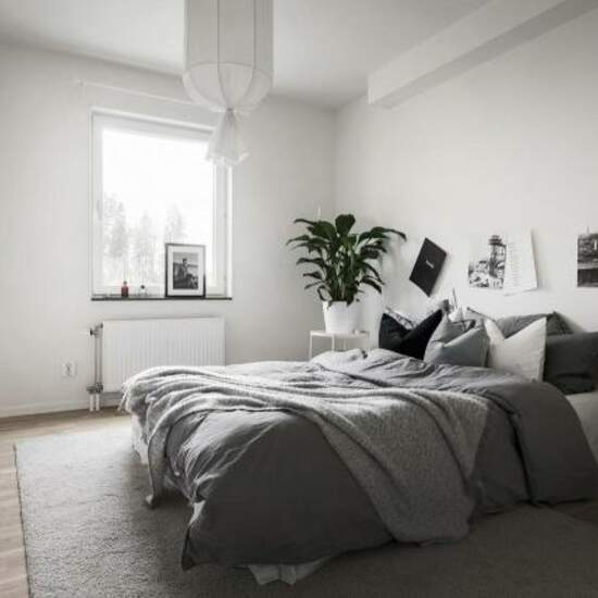 White walls, four large wardrobes. Balcony, light-colored floors. Everything is brand new.