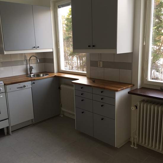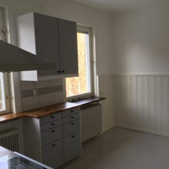 Apartment in Hägersten, 1st floor (no elevator) with views in three directions. Large kitchen (approximately 10 sqm) with gray cabinetry, dining area for 8 people, dishwasher, spacious cabinets, and two windows facing the courtyard. Tiled floor. Living room with original parquet flooring, two windows, and access to a south-facing balcony. The bedroom (approximately 12 sqm - fits a double bed) has two built-in wardrobes and parquet flooring. The bathroom is fully tiled and has a bathtub. The apartment was completely renovated in the spring of...