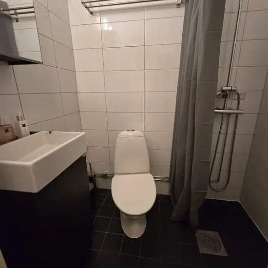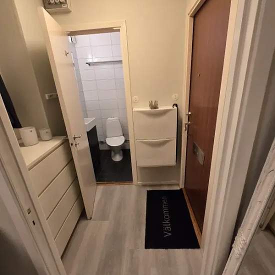 The apartment is on the 3rd floor in a quiet area within walking distance of the commuter train station. It is rented partially furnished, including a bed and a sofa. By car it takes only 10 minutes into Gothenburg, and by the commuter train (zone A) you'll be at Central Station in 13 minutes. Electricity, heating and internet are included. Home insurance is required. A parking space can be arranged right by the building, if needed, for 250 SEK/month. The housing association must approve the tenant.