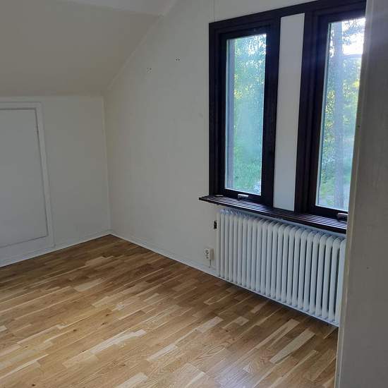 Trevlig vindsvåning med snetak, snöskottning för bil och gångar hjälps hyresgästerna åt med, fiber finns indraget! teckna avtal gör hyresgästen själv fina promenadvägar utmed forsen. busshållplats utanför huset