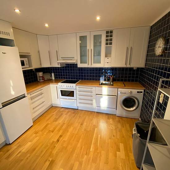 From February 1st, 2026 Maximum 2 people. No children, no pets. Minimum 6-month rental, preferably longer. Rent: 13,500 SEK/month. Completely newly renovated, tastefully furnished 65 m² apartment in a modern, 20-year-old building. Private patio. Possible parking for a small car. About 300 m to Tibble station (Roslagsbanan takes about 15 minutes to Tekniska). A 7-minute walk to Täby Centrum. You will have your own patio. The bathroom is fully tiled and has a washing machine and dryer. The kitchen is a real kitchen with stove/oven, fridge,...