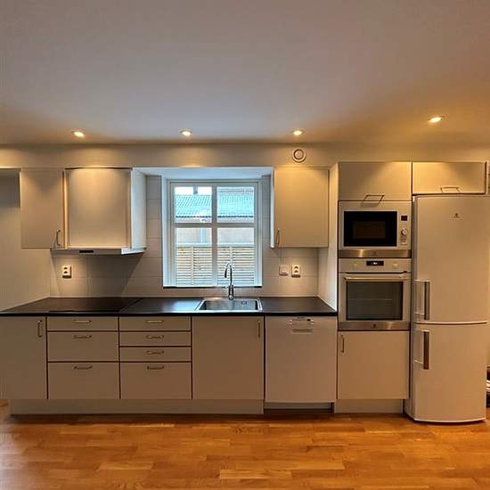 Denna lägenhet är på 71 kvm och ligger på våning 1. Månadshyra 11 008 kronor i hyran ingår vatten och värme. Charmig lägenhet centralt belägen med egen ingång och stor uteplats. Köket har en öppen planlösning och är utrustat med diskmaskin, inbyggd mikro och ugn. Två badrum varav ett är helkaklat med golvvärme, dusch, tvättmaskin/torktumlare. I sovrummet finns en vacker kakelugn (ej eldningsbar) som ger lägenheten en extra charm. Lägenheten är placerad på markplan, till höger enligt foto.