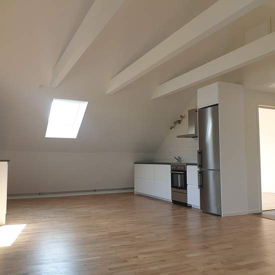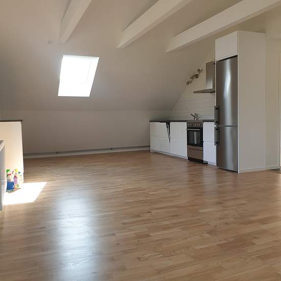 2rok, öppen planlösning kök-vardagsrum högt I tak med synliga bjälkar TM, TT, kakel och klinkers med golvvärme i badrum, klinkers i hallen, tillgång till fiber, varmhyra, balkong