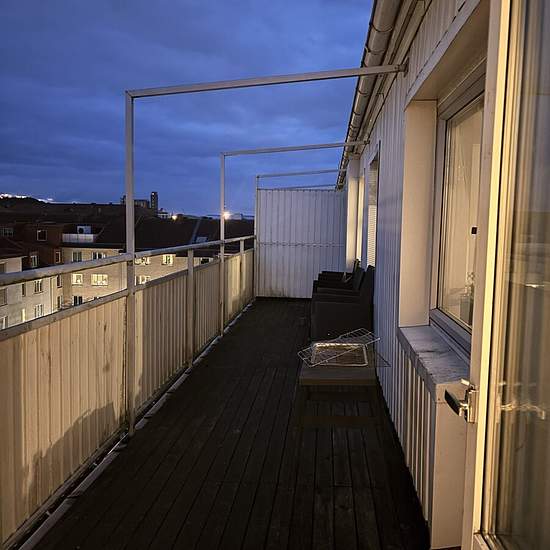 Trött på trappor? Saknar du en rejäl uteplats? Missa då inte chansen till den här rymliga och välutrustade lägenheten om 2 rum och kök med en mycket stor balkong/terras, belägen fyra trappor upp på Södra Hamngatan 16 B i Uddevalla. Här bor du med alla önskvärda bekvämligheter. Ta hissen hela vägen upp till din lägenhet på fjärde våningen. Köket är rejält och välutrustat med dubbel uppsättning av kyl/frys samt diskmaskin. Många köksskåp ger gott om förvaring. I köket finns också mer än tillräckligt med plats för hela familjen att samlas runt...