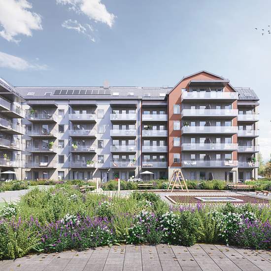 In the Rödängs Trädgårdar block, apartments from 33 sqm to 96 sqm are offered. Living in Rödängs Trädgårdar gives you all the conveniences that come with a newly built apartment: a well-thought-out floor plan and stylish, durable interiors such as matt-lacquered oak parquet, white-painted walls, smooth interior doors and natural stone windowsills. The kitchens are functionally equipped with a glass-ceramic hob, convection oven, dishwasher and combined fridge/freezer. The 3- and 4-room apartments are fitted with separate fridge and freezer. ...