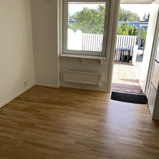 A completely separate apartment next to the house for rent. Living area: approx. 35 sqm with its own patio. • 1 bedroom • Living room • Kitchen • Bathroom • Only for one person • Proof of employment required. • No pets are allowed. • Move-in: Immediate • No access to internet; you are responsible for internet. • Heating and water included in the rent. Electricity consumption for 7 months is included in the rent. For electricity consumption during 5 months (wintertime), an additional 500 SEK applies. Good transport connections: the nearest...