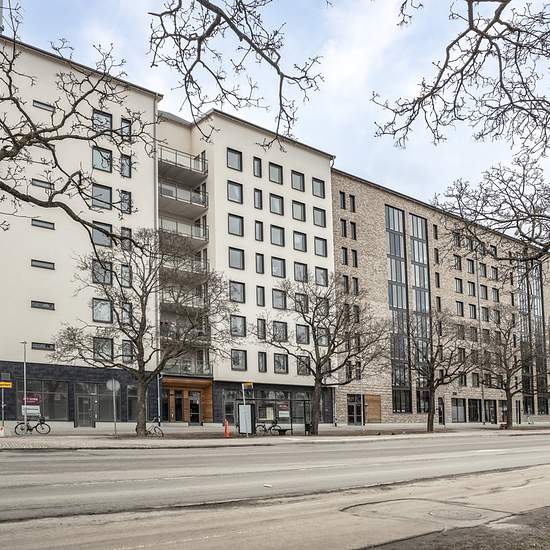 Senapsfabriken har en smakfullt arkitektonisk variation, som bidrar till en välkomnande infart till Uppsala. Fasaderna går i ljusa färger och består till större delen av puts och tegel, med detaljer i glas, trä och stål. De stora glaspartierna utmed Kungsgatan och järnvägen blir karaktäriserande för kvarteret och tillsammans med träinklädda entréer ger de ett lekfullt och inbjudande intryck. Samtliga lägenheter är vitmålade och har genomgående ekparkett, förutom i hall och badrum där det finns ett mörkt klinkergolv. Kök har vit skåpinredni...