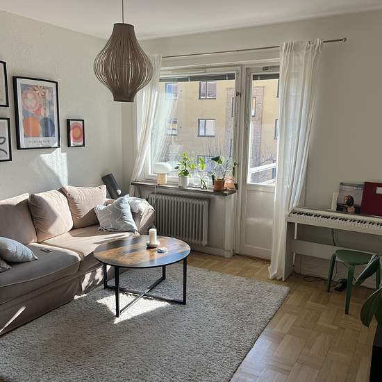 Jag och min flickvän hyr ut vår mysiga lägenhet i Luthagen. Balkong finns med utsikt mot en innergård med uteplats och grill. Det är fönster åt båda sidorna av lägenheten vilket gör att mycket härligt ljus kommer in! Lägenheten är nära till allt, men är ändå i en avslappnad miljö. En kort fem minuters promenad tar dig till närmaste matbutik, medan Uppsala centralstation nås på ca 30 minuters gångavstånd. I källaren finns gym, bastu och tvättstuga. Cykel finns att låna. Serviceavgift för hyresgäst: 643