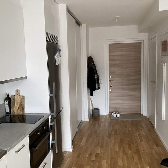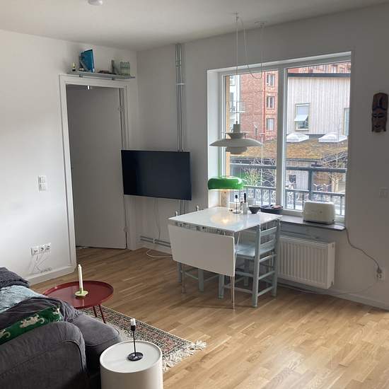 Hi! There is now an opportunity to rent a modern and well-planned 35 m² apartment in popular Rosendal. The residence was completed in 2023 and is located on the first floor (not ground level) with a pleasant balcony facing the street and a preschool. About the apartment The apartment is optimally laid out with a spacious hallway, a combined kitchen and living room, and a separate bedroom with good storage. Thanks to the ample storage space, the home is perfect for both singles and couples. Interior: Fully furnished and with a fully equipp...
