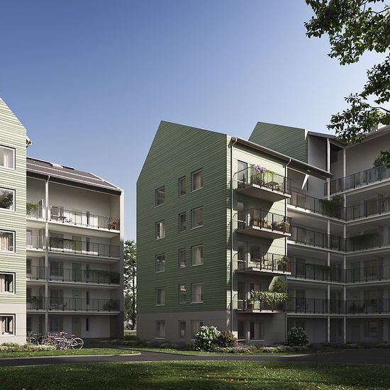 The apartments are smartly designed with generous natural light that creates an airy and pleasant atmosphere. Each home offers either a balcony or a spacious, furnished patio – perfect for both relaxation and personal gardening. Here you will find consistently high standards with beautiful oak parquet flooring, a stylish fully tiled bathroom, and a modern kitchen equipped with a dishwasher as well as an elegant, integrated microwave solution. The separate laundry room provides extra convenience and contributes to a smooth and functional eve...