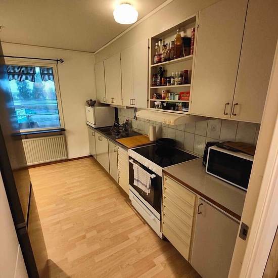 This is a nice 2-room apartment, best for a single person, a couple, or a family with one child. It is very close to the Coop shopping mall and a bus stop with connections to any part of the city. 2 km to Lyten (formerly Northvolt). Very clean and very calm environment. Service fee for tenant: 420