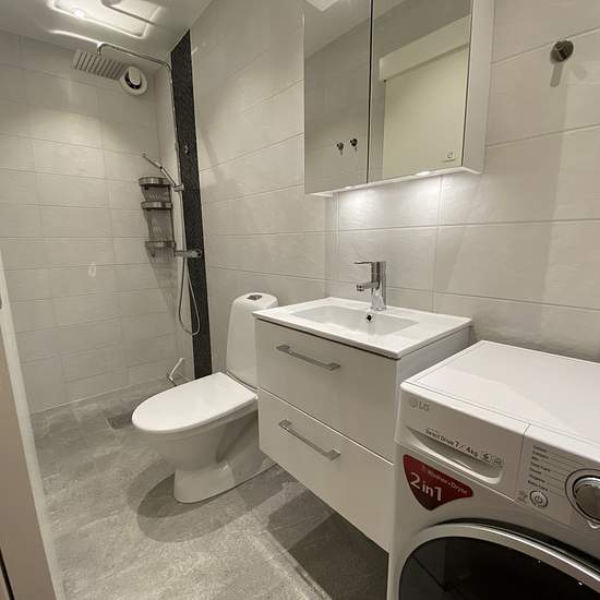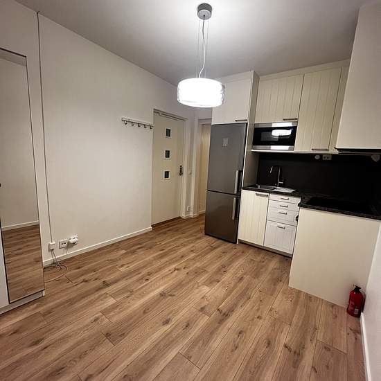 Small, nice fully renovated studio of 30 sqm in Kälvesta with appliances, including a washing machine, fridge/freezer, stove, microwave and oven. The studio is located in a quiet, family-friendly area and has access to an 8 sqm outdoor patio. One month's deposit. One month's notice. Service fee for tenant: 505