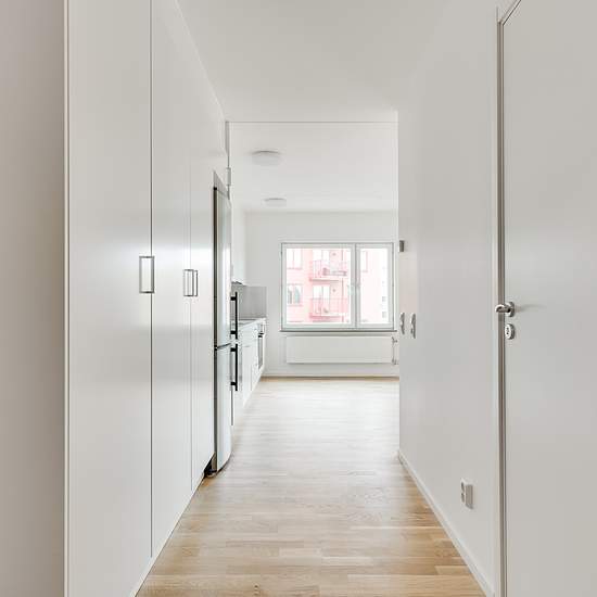Just nu Hyresrabatt i 1 år! Spara upp till 2.000:- per månad! Månad 1-4: 2.000:- rabatt/månad Månad 5-8: 1.000:- rabatt/månad Månad 9-12: 500:- rabatt/månad Gäller vid nytecknande av kontrakt. Tvårummare med balkong om ca 7 kvm åt syd/väst. Fönsterbänkar i natursten, vitmålade väggar och ekgolv. Vitt kök med dämpade fullutdragslådor från Vedum med rostfria vitvaror från Electrolux; diskmaskin, kombinerad kyl/frys, induktionshäll, varmluftsugn och mikrovågsugn. Helkaklat badrum med dusch med vikbara duschväggar, vit kommod, spegelskåp med ...