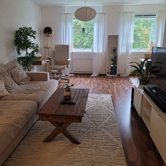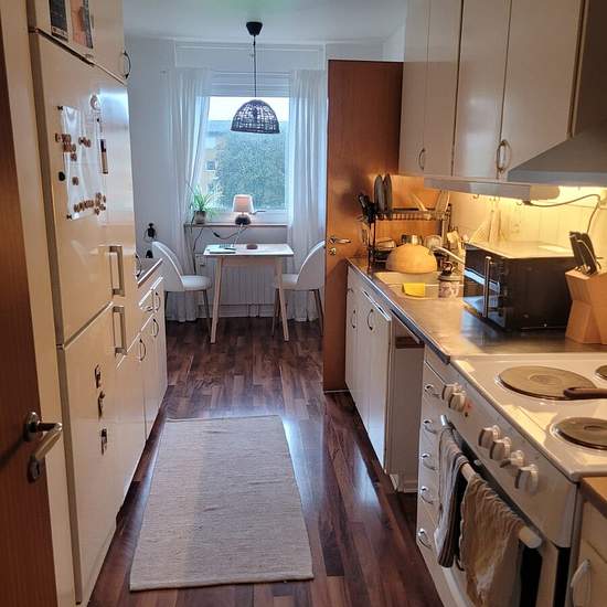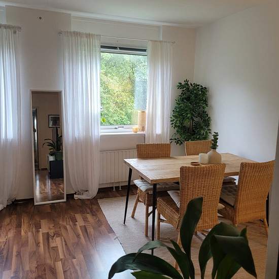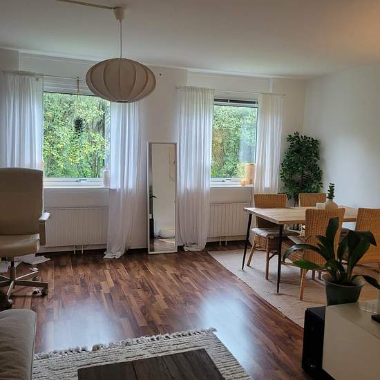 Apartment of 67 sqm with 2 rooms and kitchen, located on the first floor in Frölunda. Consists of a living room, bedroom, kitchen and bathroom with bathtub. Balcony facing courtyard/green area. Parquet flooring throughout and light-colored walls. Rented fully furnished. The rent includes heating, water, internet and parking space. Electricity is not included. Basement storage is not included. Within walking distance to Bergkristallgatan bus stop with good public transport connections. Deposit: 1 month's rent. Service fee for tenant: 491