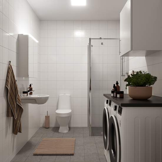 Newly built apartment with a dishwasher, washing machine and tumble dryer.