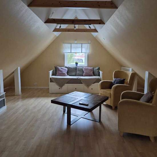 Uthyrning under läsåret 2025–2026 Mysig och möblerad 2-rumslägenhet med kök uthyres, belägen på Vallérsgatan i en separat byggnad med egen ingång i markplan. Cirka 10 minuters promenad till Östercentrum. Entréplan ca 25 kvm: – Hall med bra förvaring – Badrum med toalett, dusch samt kombinerad tvätt/tork – Kök i vinkel med spis, mikro, diskmaskin och kyl/frys – Matplats för 4 personer – Utgång till egen terrass om ca 15–20 kvm Övre plan ca 40 kvm: – Sovrum med dubbelsäng (160 cm) och god förvaring – Stort allrum med dagbädd (160 cm), fåtöl...