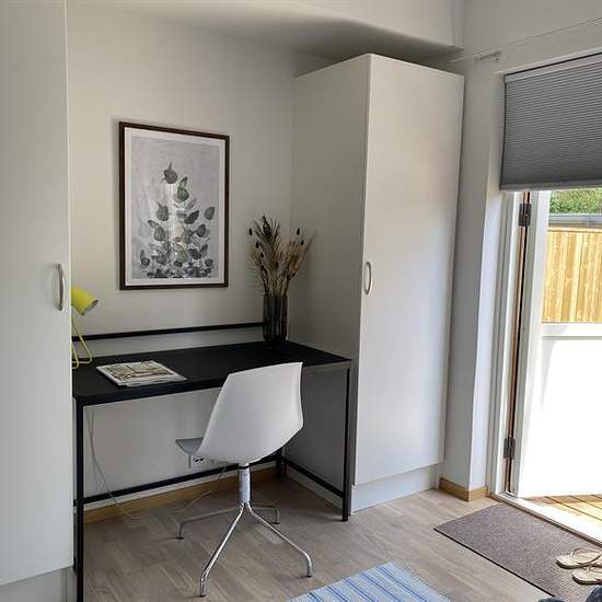 Denna mysiga och välplanerad lägenhet ligger i lugna Länna, en kort promenad ifrån Söderport och Visby ringmur. Den har ett separat sovrum med två 90 sängar (inkl. täcken och kuddar), skrivbord, garderober samt utgång till en härlig altan med morgonsol. Köket är fullt utrustat med allt du kan tänkas behöva, som t.ex. mikrovågsugn, kaffekokare, vattenkokare, brödrost, stekpannor, kastruller, tallrikar, glas, bestick etc. Här finns även dammsugare, strykjärn, hink, svabb medmera. I badrummet finns dusch och kombinerad tvättmaskin/torktumlar...