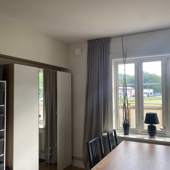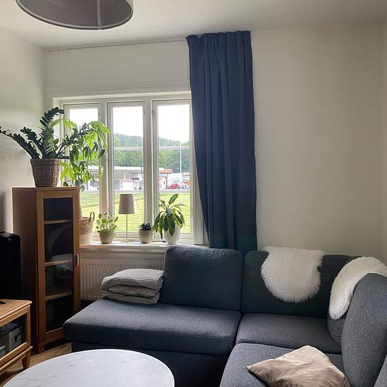 Nice two-room apartment, recently renovated, with its own washing machine and dishwasher. Parking included. Situated in a pleasant natural setting with the Viskan river right next to it at Rogsholmsvägen 6, two km from Viskafors center where everyday essentials are available. A couple of hundred metres to the bus stop and about one km to the train station.