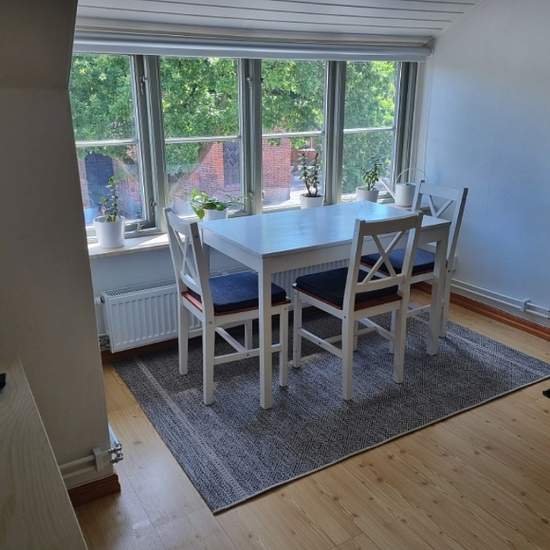 3 minutes to Ystad's shopping center/pedestrian street. From the apartment's dormer you have a view of the Abbey Church/St. Peter's Church from 1267, the rose garden and the herb garden. The apartment is on the second floor with stairs up to approx. 40 m², laid out as one bedroom, an open living area with dining space, a kitchen and a bathroom with shower, where the sink and toilet are under a sloping ceiling. Fully equipped kitchen with stove/oven, fridge/freezer, dishwasher, microwave, washer/dryer, coffee maker etc. Wi‑Fi and TV with Chro...