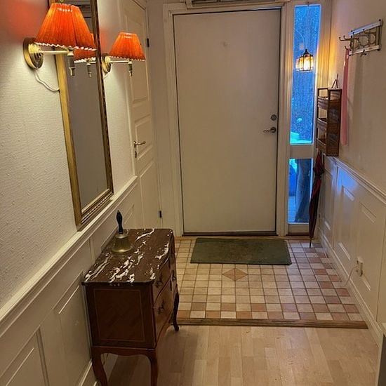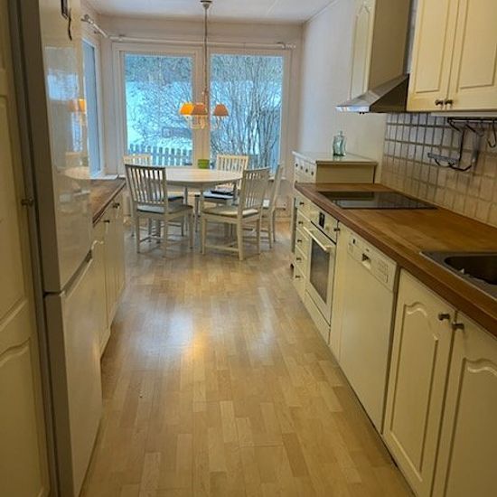 Possible to rent without a deposit through Samtrygg. Monthly cost: 14,950 SEK. ________________________________________________________________ The fastest way to book a viewing is by following this link to Samtrygg: Here you will also find more pictures and more information. ________________________________________________________________ Rydbo is located between Täby and Vaxholm. The house is a ground-level townhouse. Enclosed corner plot with two patios. Two playgrounds within the townhouse area. Five minutes’ walk to Roslagsbanan (Ry...