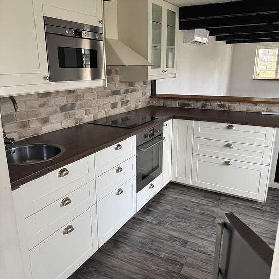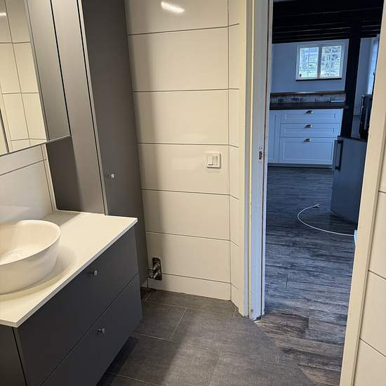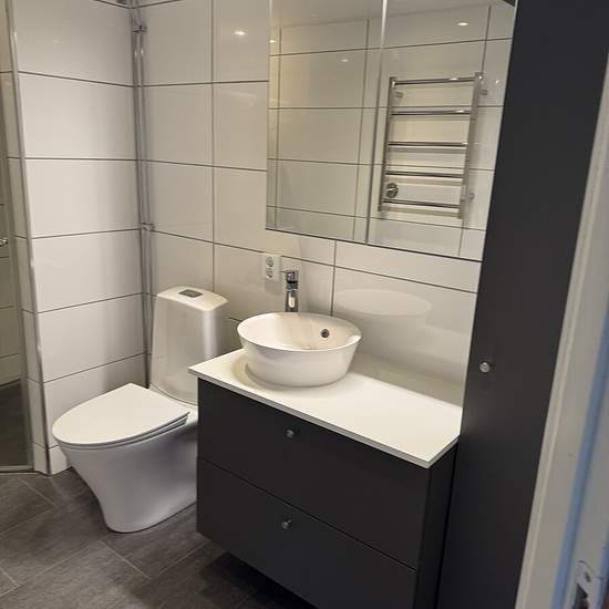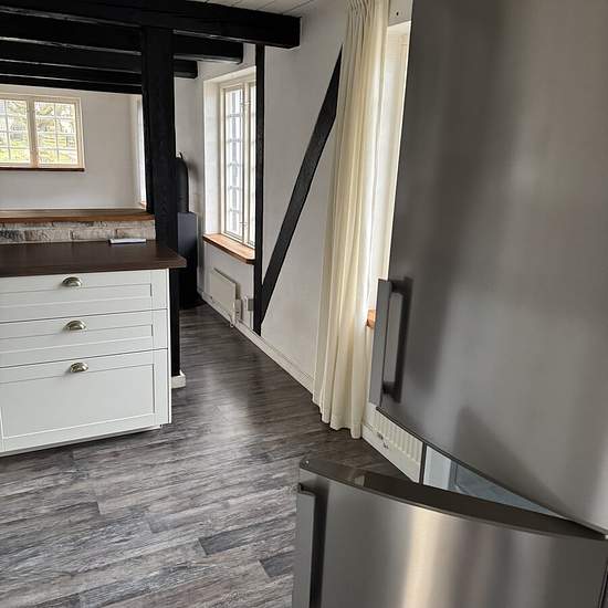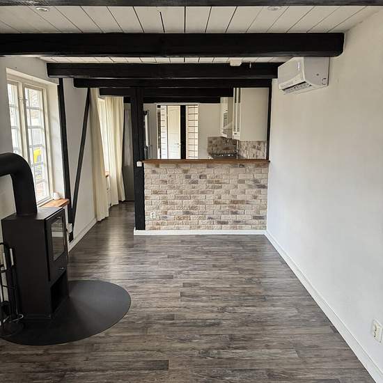 Nice, bright, pleasant small house on an existing property. Patio, lawn, parking with space for 2 cars. New air-source heat pump, one bedroom with wardrobe, kitchen with a bar counter opening onto the living room. Wood-burning stove. Newly renovated bathroom with shower, underfloor heating and towel warmer, washing machine and tumble dryer. Storage space in an insulated attic. Electricity is extra. Looking for a non-smoking tenant without pets. Service fee for tenant: 371