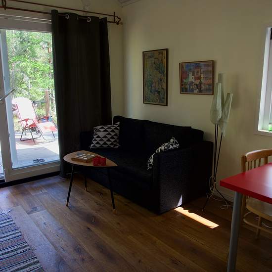 Fully equipped Attefall house with a lakeside location. Wifi, dishwasher, washing machine, microwave, gas grill, shower, AC/air-source heat pump and toilet. The house is 25 sqm plus a 10 sqm sleeping loft. In the Japanese-style sleeping loft there is a comfortable bed that is 180 cm wide. There is a bus connection, but a car is recommended. Looking for responsible tenants with a steady income who appreciate living close to nature. You should care for the environment and use resources sparingly. Electricity is additional. There is a separat...