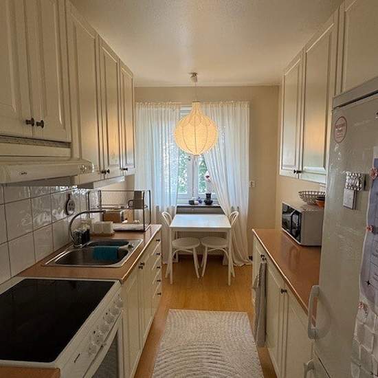 2 rok med balkong från sovrum och franskbalkong i vardagsrum. 50kvm, hyra 7 576kr/mån. Värme och vatten ingår i hyran. Ett vindsförråd ingår. Tv-paket Bas från Telenor ingår i hyran. Hyresgästen tecknar eget el abonnemang. Bredband via Telenor, hyresgästen tecknar själv avtal. Gemensam tvättstuga i källaren. Ledig omgående.