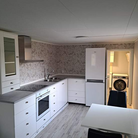 Cottage of 50 sqm with a large terrace. 250 meters to the beach. The cottage has been fully renovated and has a new air-source heat pump. Wi‑Fi is available. Electricity and heating are charged extra. If you would like more pictures, please get in touch. Parking beside the cottage. Service fee for tenant: 331