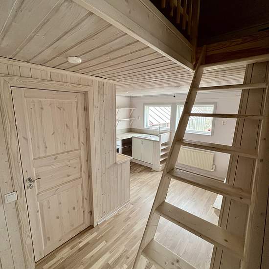 Newly renovated dwelling in an older warehouse - with a view over Valasjön in Gnesta. The dwelling is located close to our house, which means we place great importance on finding the right person. Layout: Ground floor – approx. 30 sqm - Kitchen with fridge, small freezer compartment, stove, oven, washing machine - Bathroom with shower - Hall & small living room Sleeping loft with sloping ceiling – approx. 25 sqm - Accessed via a steep ladder (not suitable for small children or limited mobility) Surfaces in light natural materials: white...