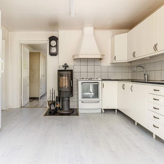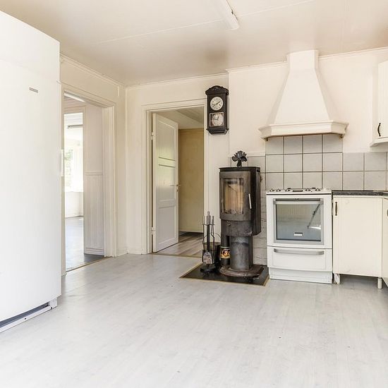 A winterized holiday home or smaller villa with 2 rooms and a kitchen in a quiet location in Västra in Grängesberg! On the plot, there is an outbuilding with storage room and loft, partly a basement, and an attached canopy. Separate newer storage shed and greenhouse. There is also a small private pond on the property. The house is heated via direct electricity and soapstone stove, municipal water and sewage are installed. Nearby the property, there are several fun activities such as Kyrkvikens popular bathing spot, the mountain for downhill ...