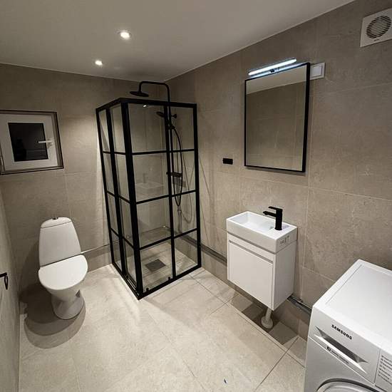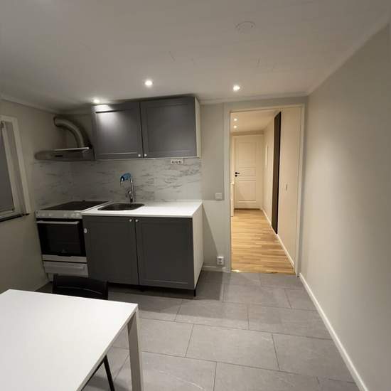 Newly built rental unit in Vendelsö with its own private entrance It takes 30 minutes by direct bus to Gullmarsplan, T-Centralen and Tyresö centrum; the bus station is 250 m from the house. All utilities included in the price: water, electricity, heating, garbage collection, etc. A stable income is required Long-term rental possible Flexible move-in Comes complete with kitchen, fridge, freezer, toilet, shower and washing machine. Service fee for tenant: 446