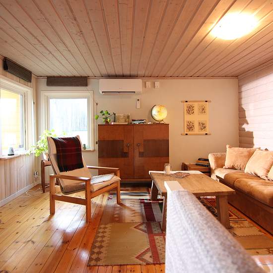 Hej! Vi har en fin stuga som vi hyr ut under kortare perioder under sommaren men som vi gärna hyr ut en lite längre period under vintern. Det gäller 4 månader, från och med första januari till och med sista april. Det är en mysig stuga som dock inte är superbra isolerad och golven är kalla så tofflor är ett måste! Uppvärmning sker med värmepump, (även el elelement finns) och en ny kamin som installerades -24 och som värmer riktigt bra. Vi bor själva granne på en liten gård ca 50m bredvid. Förra året byggde vi en vedeldad bastu mellan husen...