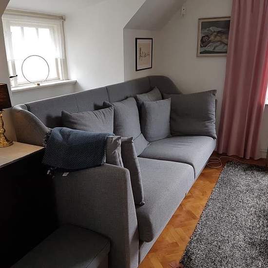 Två rum med dubbelsäng, byråer, garderoer och skrivbord ungefär som på bilderna (finns även sådant som handdukar och sängkläder). Rummet har till och med balkong (andra möbler än på bilden). Förutom det tillgång till fullutrustat kök, tvättstuga, vardagsrum, stort badrum och trädgård. Nära busslinje 1 och 2. Precis intill bra cykelvägar mot stan och stranden på Råå. I huset finns oftast ett eller två andra rum som hyrs ut. Vår familj är hemma främst under skollov vilket gör att huset är väldigt lugnt och rymligt mesta delen av tiden. Vi s...