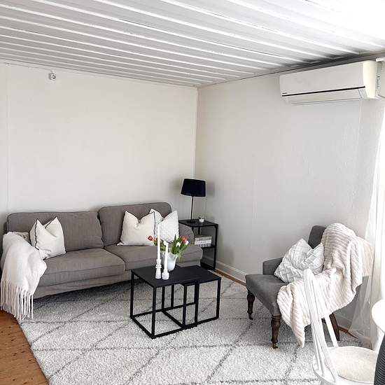 Hello, we rent out our guest house which is located separately on our plot in Glömsta / Huddinge. The house includes its own part of the plot and a parking space is available if needed. We rent out the house furnished but it can be adjusted according to the tenant's wishes. The rent includes all variable costs such as electricity, water, sewage, garbage, and internet connection. The house has a small bedroom, living room, kitchen, hallway, and bathroom with a shower. In Glömsta, there is proximity to a bathing area, schools, natural ar...
